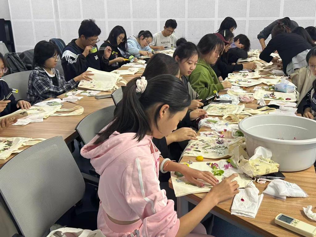 以艺润心强学风,以美赋能促成长。10月20日晚,苏州科技大学建筑与城市规划学院团委、学生会联合策划的首期“新风启航,‘筑’力成长”学风晚自习活动——植物拓染帆布包体验顺利开展,新生在实践中感受自然美学与传统技艺的魅力,为学风建设注入鲜活气息。