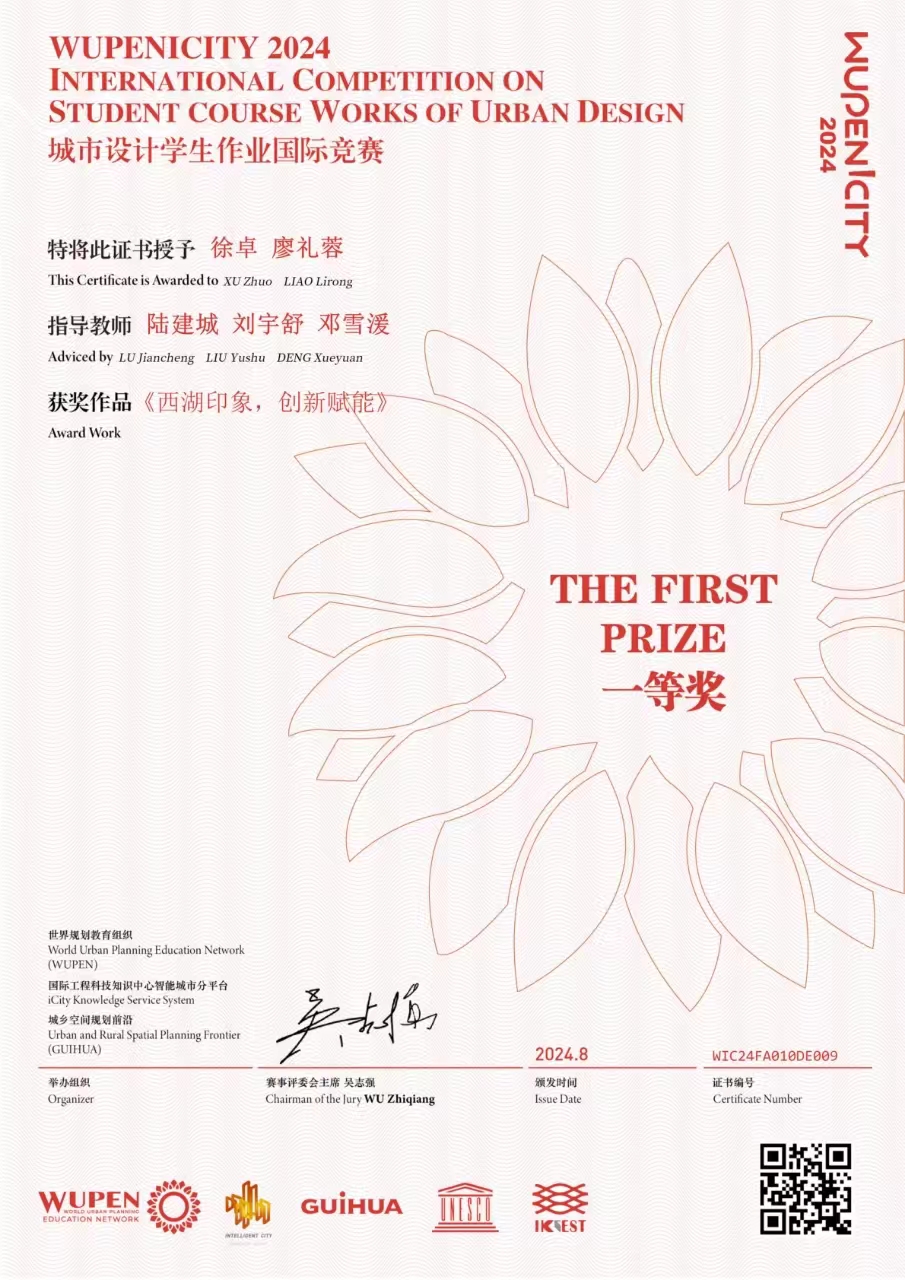 在国内城乡规划等相关专业最权威、参与度最高、竞争最为激烈的国际性大型赛事“WUPENiCity城市设计学生作业、可持续调研报告国际竞赛”中,我校学生共有9项作品获城市设计奖,其中一等奖1项、二等奖1项、三等奖4项、提名奖3项,获奖总数量位居全国前三。另有城市可持续调研报告获二等奖3项。