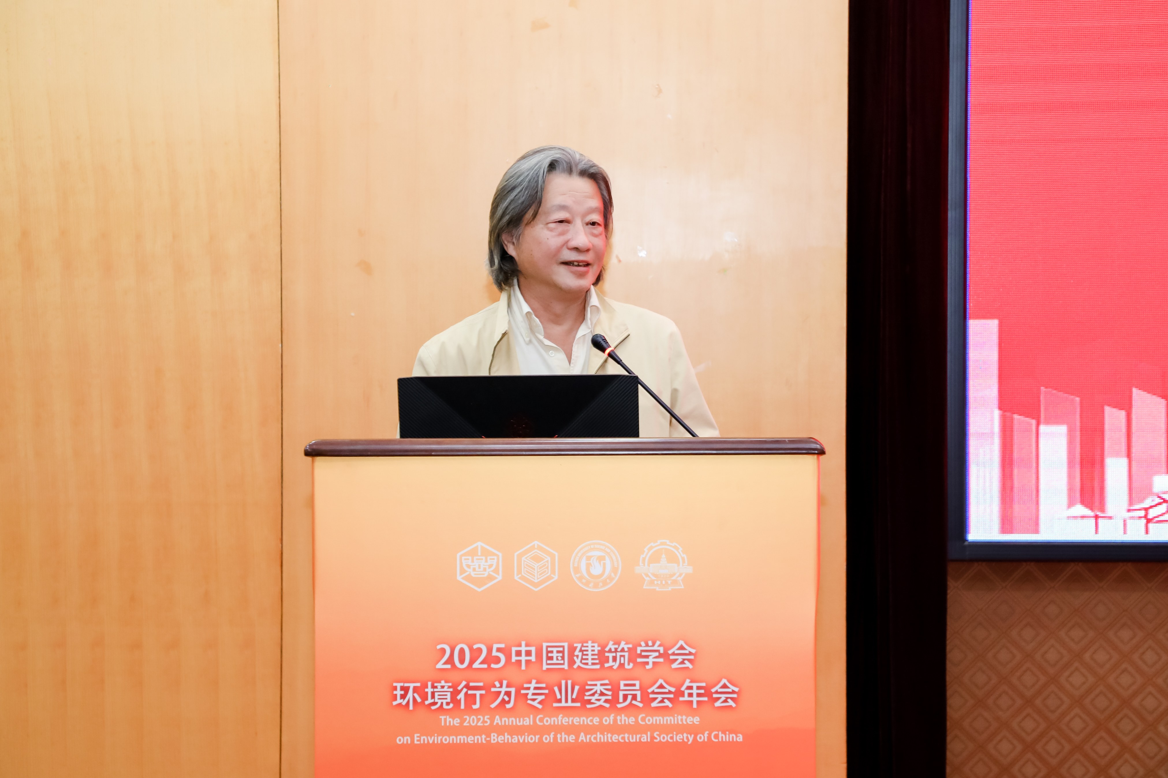上午八点半,在系馆二楼报告厅举行开幕式,中国建筑学会环境行为专业委员会主任委员、哈尔滨工业大学邹广天教授和我院院长邱德华教授发表致辞。邹广天教授对到场的嘉宾及委员、参会代表表示欢迎,他对聚焦环境行为心理研究进行了深刻阐释,并对大会研究成果如何更好地融入学习和工作提出期望。邱德华教授强调了空间行为研究在新时代城市更新与社会治理中的重要作用,指出随着老龄化社会的到来与数字化技术的迅猛发展,学界与业界亟需跨学科的研究方法与创新工具,以科学地理解人与空间的互动机制。