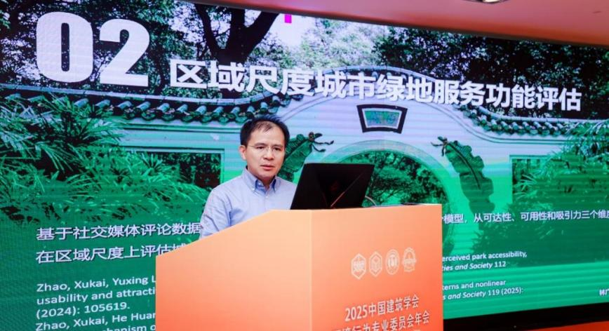 林广思教授的特邀报告题目为《促进居民健康福祉的城乡绿地服务功能多维度评估方法》。通过区域和场地两个尺度构建城乡绿地服务功能多维度评估方法体系。区域尺度借社交媒体数据与深度学习评绿地品质,场地尺度靠全景图像等评估感知指标与文化效益,揭示绿地对使用者健康的影响,为城市绿地提质、健康城市建设及联合国可持续发展目标提供支撑。