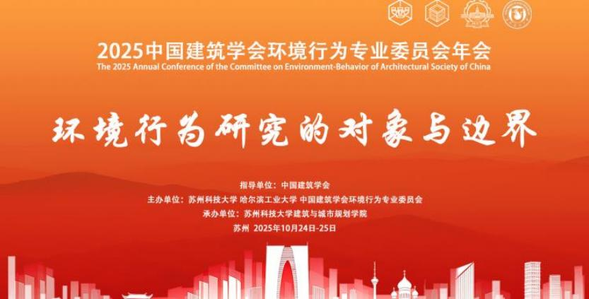2025 年 10 月24-25 日,2025中国建筑学会环境行为专业委员会年会在苏州隆重召开。本次年会由苏州科技大学、哈尔滨工业大学、中国建筑学会环境行为专业委员会联合主办,由我院承办。我校校长顾菊平,中国工程院院士、清华大学教授庄惟敏,大连理工大学教授陆伟担任大会名誉主席。本届年会以“环境行为研究的对象与边界”为主题,是本年度环境行为研究领域具有重大影响力的学术盛会,为全国的环境行为研究者提供了互相学习和交流的宝贵机会。来自国内相关领域的专家学者、高校师生、企业代表及媒体人士等近400 人,齐聚一堂,聚焦环境行为心理学研究对象与边界的历史演进与未来方向、空间-社会视角下的环境行为研究、地下空间环境心理学、老年人群生活环境、感性建筑学等议题,共同探讨环境行为学、环境心理学的前沿研究成果及未来发展趋势,追问环境行为研究的对象有哪些、边界在哪里,探寻学科融合与分野的内在逻辑,并探索跨学科知识的新范式,为促进城乡人居环境建设的高质量创新发展提供科学依据及指导。