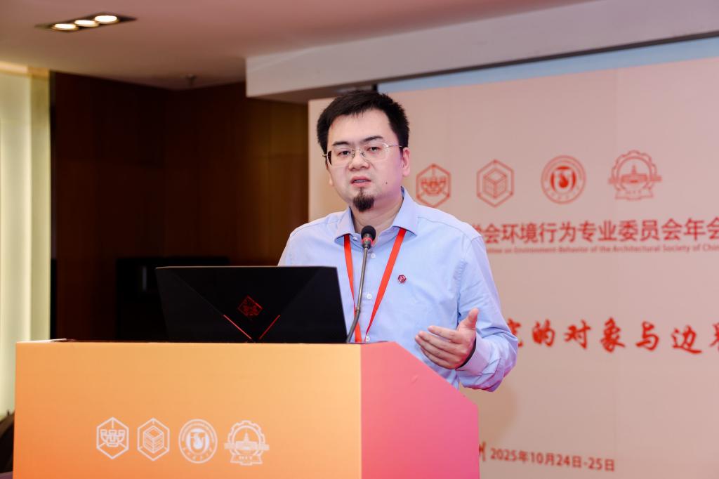 专委会委员、合肥工业大学副教授王益以《行为模拟与环境实测:面向建筑安全的环境行为研究逻辑》为题,阐述“行为模拟-环境实测”迭代循环模型,通过灾害疏散、犯罪行为分析案例, 展示虚拟现实、传感器监测等技术在建筑安全研究中的应用,为韧性建筑环境构建提供方法论支持。