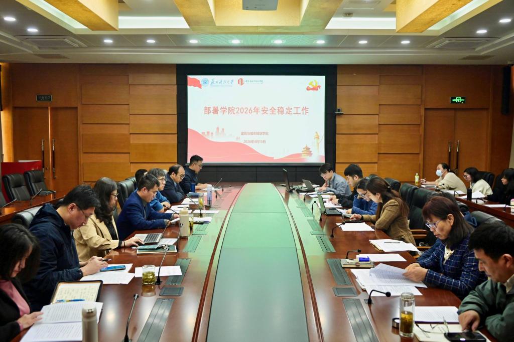 4月15日上午,我院在建筑系馆一楼会议室召开2026年安全稳定工作会议。会议旨在深入学习贯彻习近平总书记关于安全生产重要论述和总体国家安全观,全面落实学校2026年安全稳定工作的部署要求,分析研判当前安全稳定形势,部署下一阶段重点任务。学院党委书记刘志强主持会议,学院全体领导班子成员、党委委员、院长助理、各系办主任、支部书记、工会委员等参加会议。